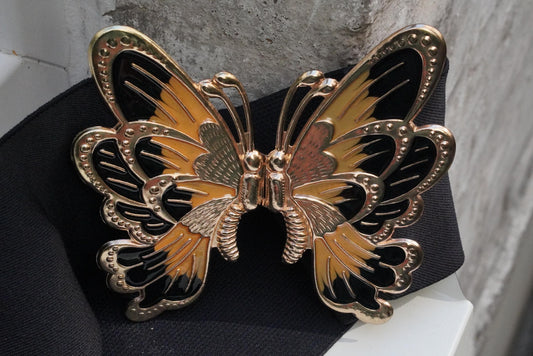 Butterfly Belt Vintage 80s Cinch Waist Elastic Gold Animal Buckle Statement Wide
