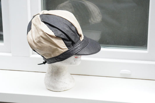 Vintage Leather Baker Boy Hat Bi-Color Newsboy Cap Two Tone Paneled Baret Hat