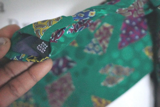 Vintage Silk Tie Emerald Green Geometric Mosaic Print 90s Retro Abstract