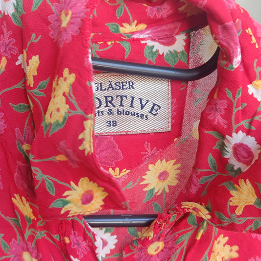 Red Vintage Floral Blouse - 90s Short Sleeve Flower Print Shirt - Size S