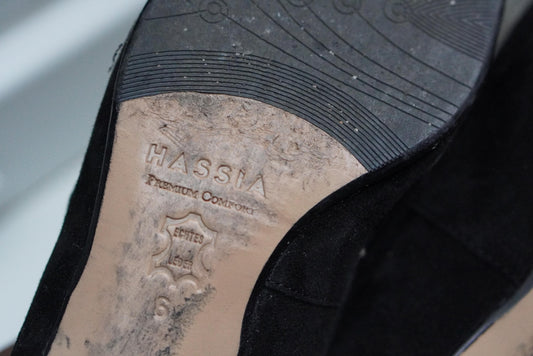 Vintage Hush Puppies Black Leather Wedge Sandals | Y2K Chain Slides EU 42