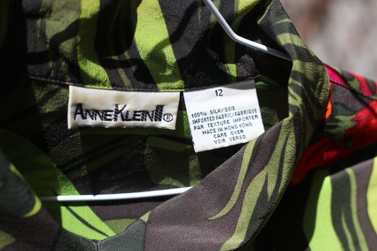 Anne Klein 100% Silk Tropical Shirt | Vintage Short Sleeve Floral Blouse