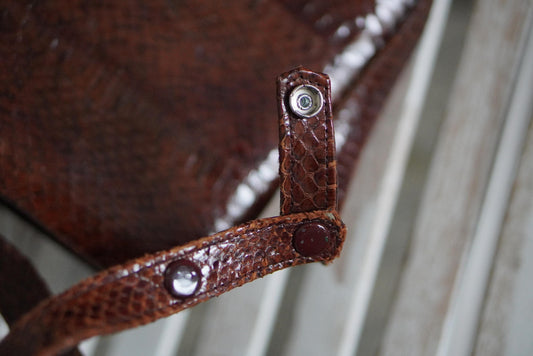 Vintage Python Skin Crossbody Bag Brown Snake Leather Purse 70s Small Exotic Bag