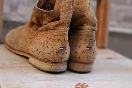 Vintage Tommy Hilfiger Denim Suede Ankle Boots| 90s Brown Leather Boots| Minimalist brown boots with perforated design EU40