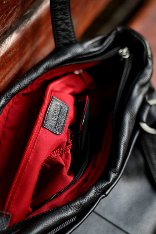 90s Leather Backpack| Vintage Asymmetric Mini Black Bag| Minimalist Women's Bag
