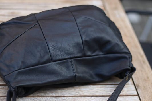 90s Black Hobo Bag| Vintage Leather Crossbody Tote| Chic Bohemian Handbag|