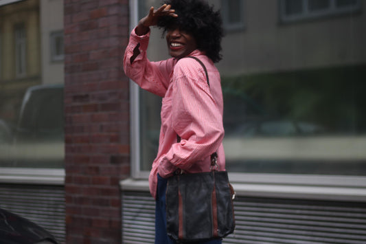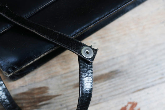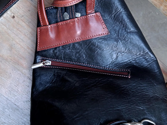 Italian Vintage Leather Crossbody Bag| 90s Handmade Black Purse with Brown Accents| Minimalist Shoulderbag with Adjustable Straps