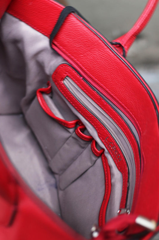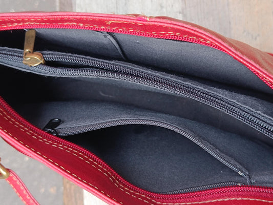90s Leather Handbag| Vintage Red Shoulderbag | Minimalist Compact Crossbody Bag with Adjustable Strap