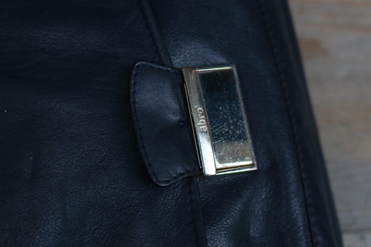 70ss Black Leather Shoulderbag | Vintage Genuine Leather Hand bag | Women's Minimalist Classic Tote with Silver Details