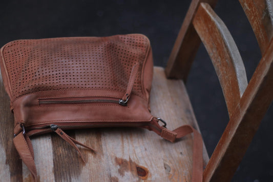 Vintage Gusti Leather Studio Shoulderbag |90s Cognac Leather Crossbody Bag with Perforated Details & Adjustable Strap| Timeless Chic Handbag