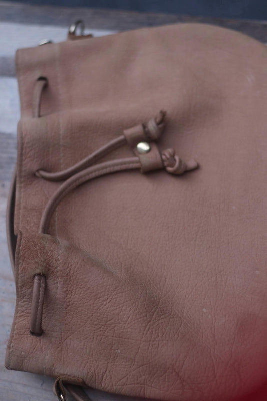 Vintage Leather Drawstring Crossbody Bag| 90s Handmade Brown Bucketbag | Minimalist Shoulderbag with Removable Straps|Timeless Eco-friendly