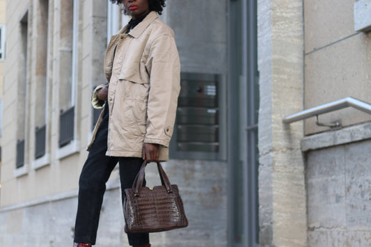 Vintage Brown Croc-Embossed Leather Bag | Retro Structured Handbag | Parisian Chic | Work Tote |Classic Aesthetic | Timeless Statement