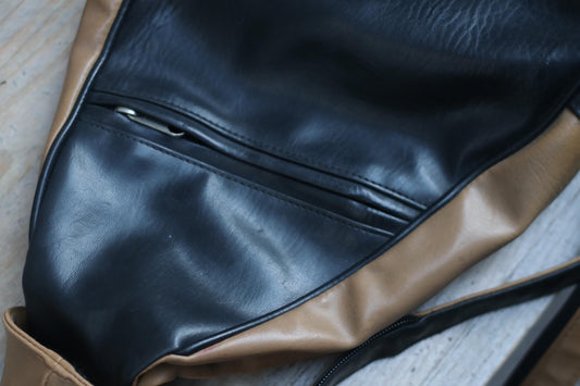 90s Leather Backpack| Women's Vintage Brown Assymetrical Bag| Avant-garde Minimalist Mini backpack