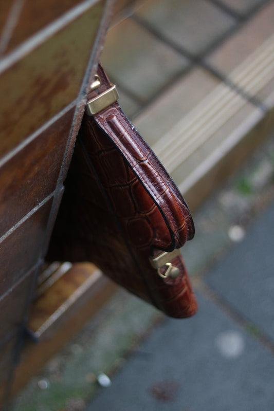 Vintage Bag with Faux exotic skin | Brown compact purse bag with chain strap