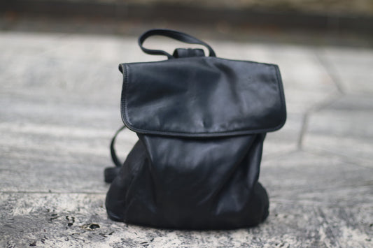 y2k leather backpack | Vintage black compact off duty bag| Purist minimalist backpack bag