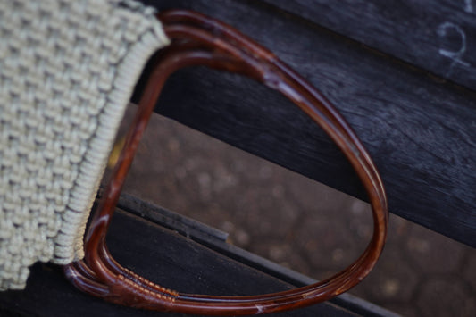 70s leather bag with wooden details| Vintage Minimalist cream and brown shoulderbag