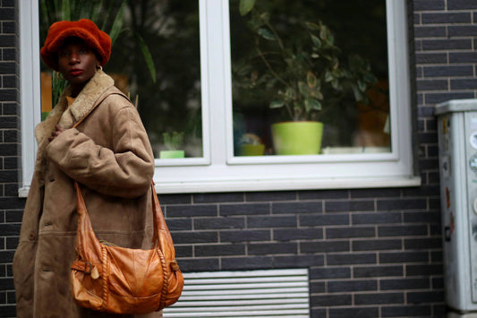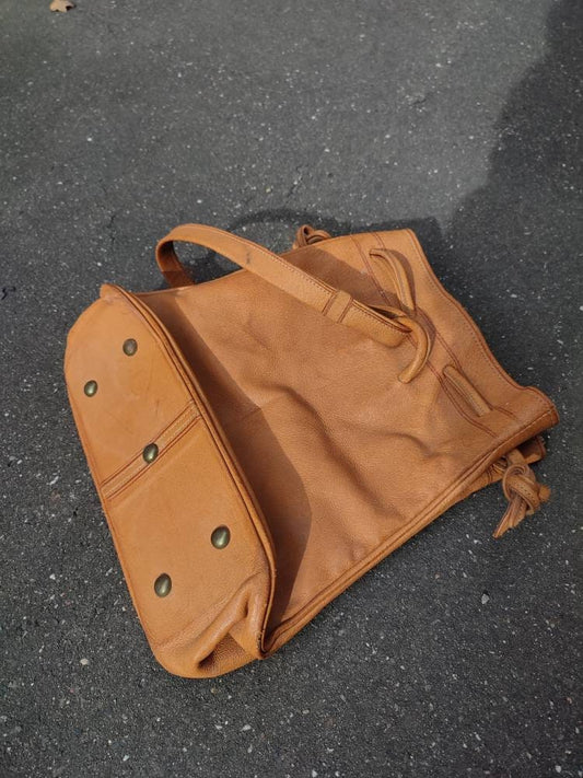 70s Leather bag with statement handle | Vintage Brown carry all with pleated details| Minimalist Shoulderbag for Capsule Wardrobe