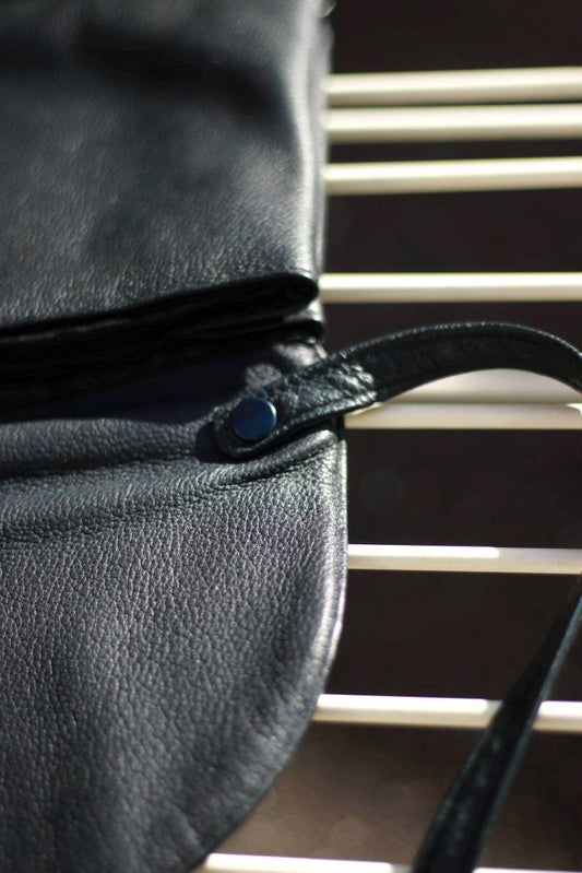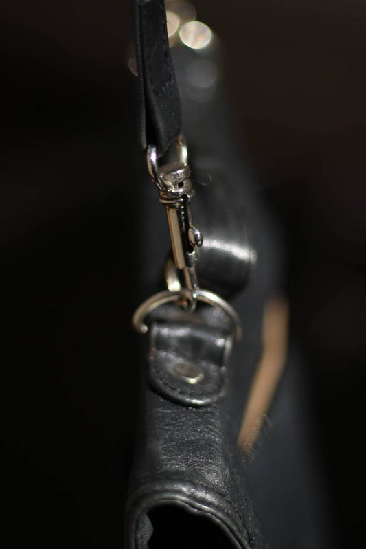 90s Picard leather shoulder bag| Vintage minimalist hand bag in black with detachable straps