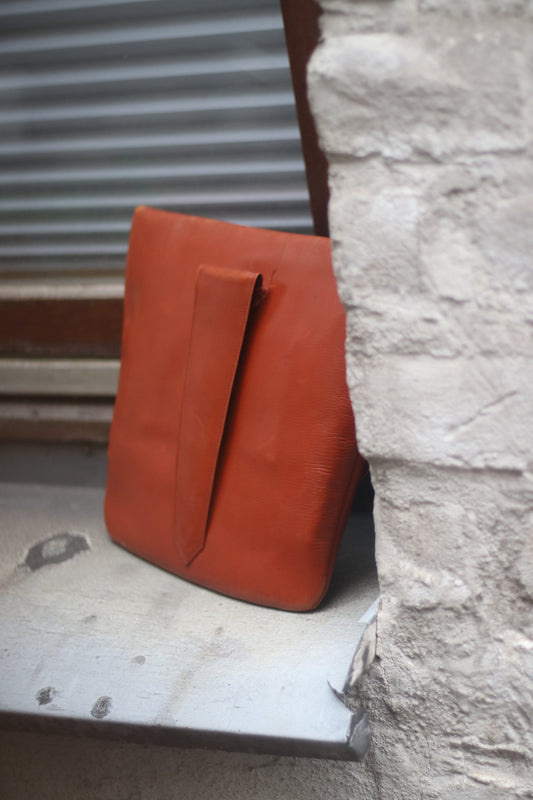 70s brown leather handbag | rare vintage wrist bag| Classic elegant accessory| Minimalist purist compact mini bag