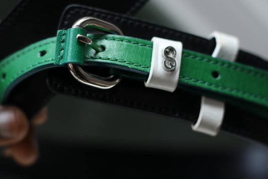 Vintage Escada Sport Reversible Leather Belt – Black & Green D-Ring Buckle – Designer Wide Waist Belt – 90s Statement Belt – Adjustable Eque