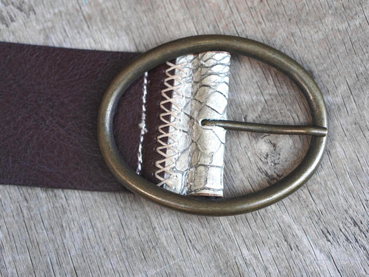 90s Brown Belt | Women's Vintage boho chic belt with Statement Buckle|