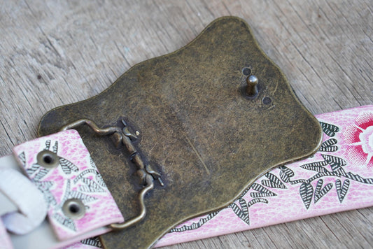 Y2K Floral Leather Belt: Hand Tooled Pink Boho Statement Belt
