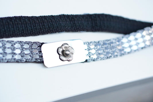 Vintage Metallic 80s Waist Belt with Black Stone Buckle