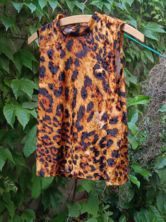 y2k Leo Print Top| Vintage Sleevsless Animal Print Summer Turtleneck | 90s Brown High neck Festival Blouse
