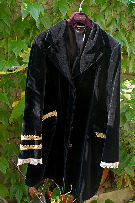 Vintage Adele Fado Coat | 80s Victorian-Inspired Velvet-Like Jacket | Gothic Black Evening Wear