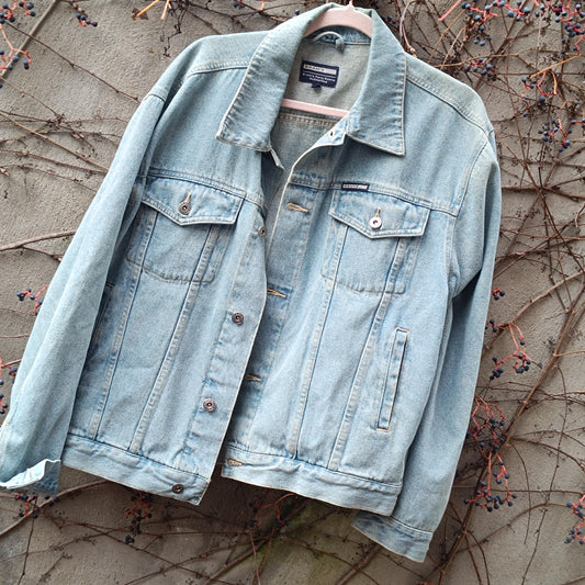 Vintage Bram's Paris Denim Jacket L; Streetwear Light Wash Trucker 90s Cotton Jeans Coat
