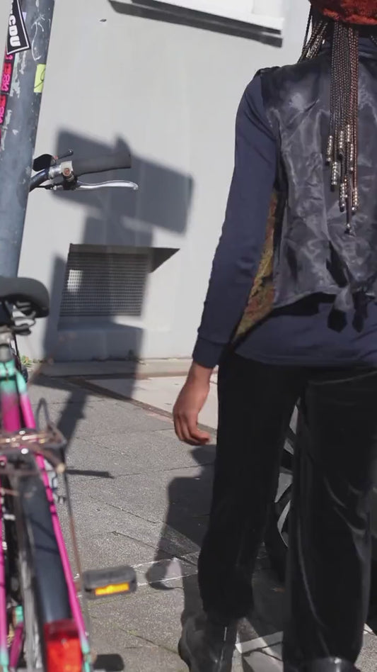 Vintage Embroidered Folk Vest Black Velvet Gold Brocade Waistcoat Boho Festival Top