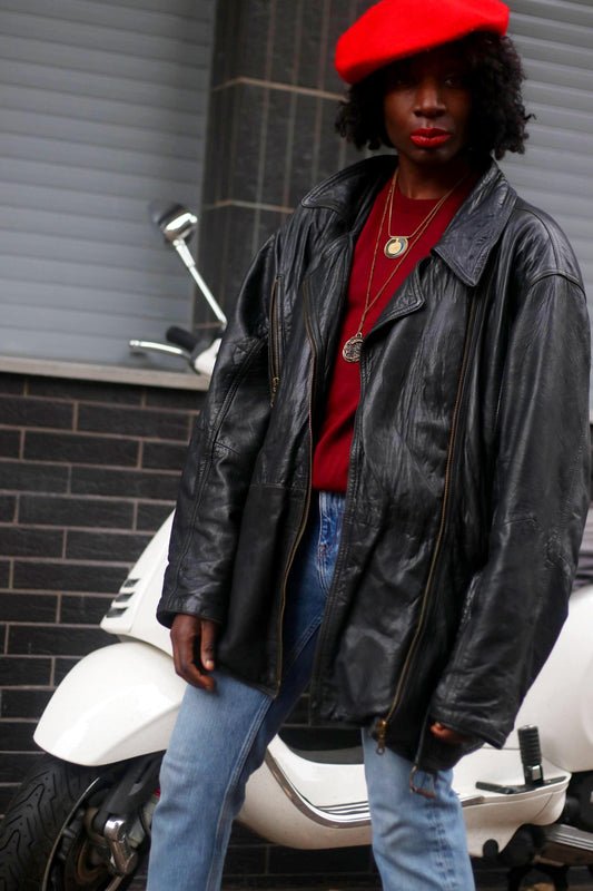 80s Black Leather Jacket| Genuine Leather Unisex Moto Coat|