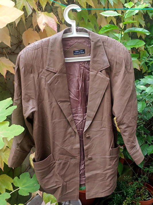 80s Brown Leather Jacket| Vintage Blazer Leather Coat | Womens Minimalistic Outerwear |