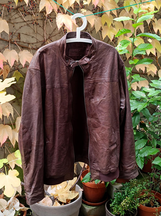 90s Conbipel leather Jacket| Vintage Women's Brown Minimalist Oversized leather coat| Capsule Wardrobe Jacket
