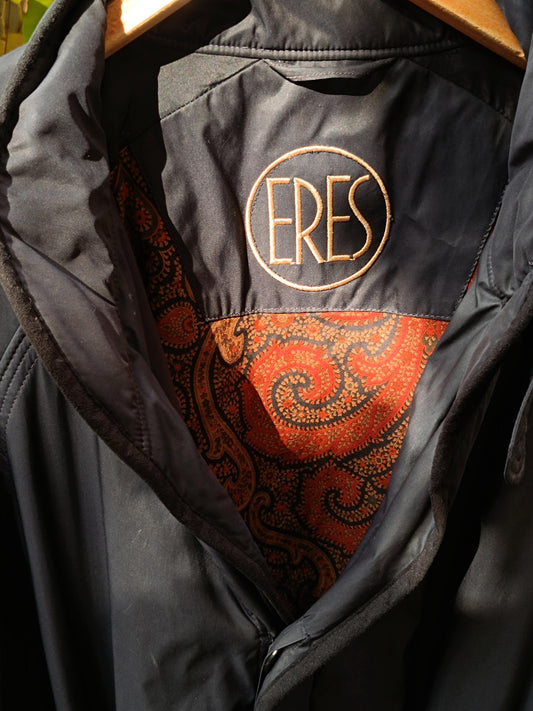 80s Eres Trenchcoat| Vintage Black Padded Jacket| Minimalist Country Preppy Fall Coat