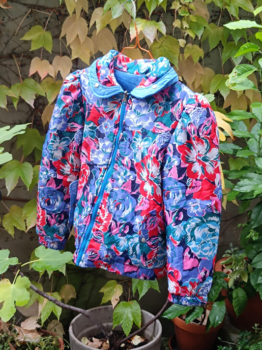 Vintage Linea Val Puffer Jacket| Vintage Blue and Floral Print Winter Coat | Women's Maximalist Winter coat