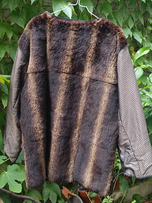 70s Fur and Fabric Winter Jacket | Vintage Mixed Media brown and grey Winter Coat| Women's cozy cardigan
