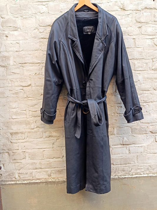 Genuine Leather Trench| Vintage Don Pepe Unisex Black Winter Trench Coat | Minimalist Outerwear