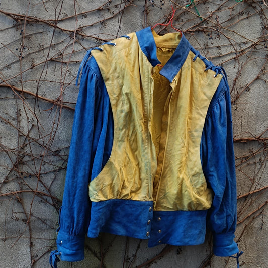 80s Vintage Suede Jacket | Blue & Yellow Colorblock Leather Jacket | Statement Patchwork Bomber | Women's Bold Retro Western Cropped Jacket