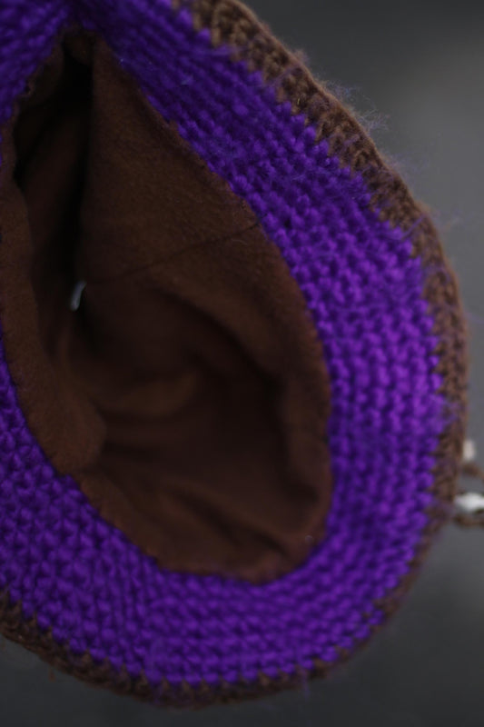 y2k Purple Knitted Hat| Vintage Cozy Hat with Floral Beaded Details |Maximalist Quirky Headpiece| EMO Girl Accessory