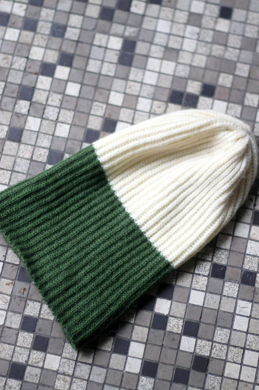 90s handknitted beanie| Vintage green slouchy winter hat| Unisex green and cream oversized street style design