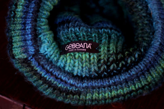 90s Gebeana Hat| Vintage Multicolored Knitted Winter Beanie| Unique Women's Winter accessory| Retro On Trend Green Hat