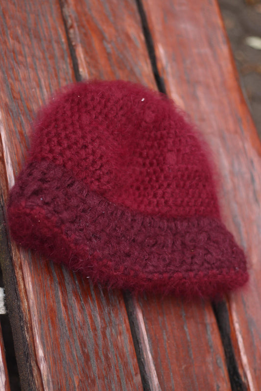 y2k Red Knitted Hat| Vintage Cozy Hat Winter Hat |Minimalist Fuzzy Headpiece| EMO Girl Accessory