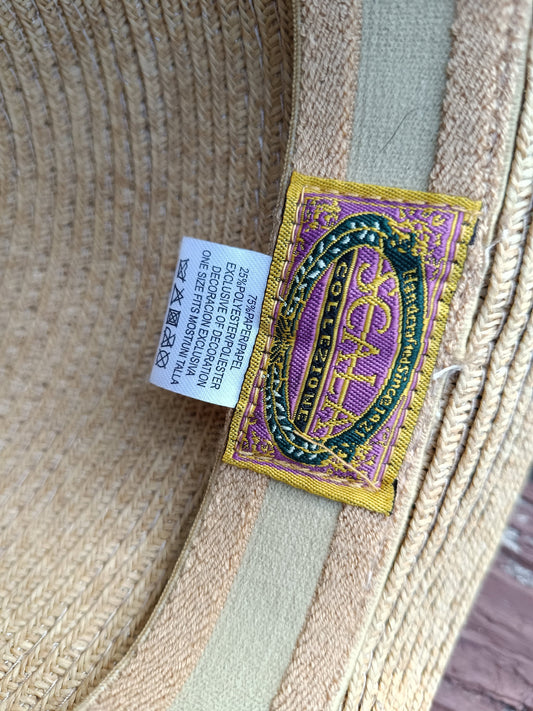 70s Scala Straw Hat|Vintage Summer hat with black bow| Cottage core chic minimalist ladylike hat