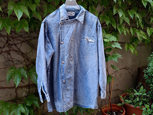 Vintage 80s Denim Shirt Jacket | Oversized Button-Up | Unisex Medium Wash | Retro Utility Layering Piece