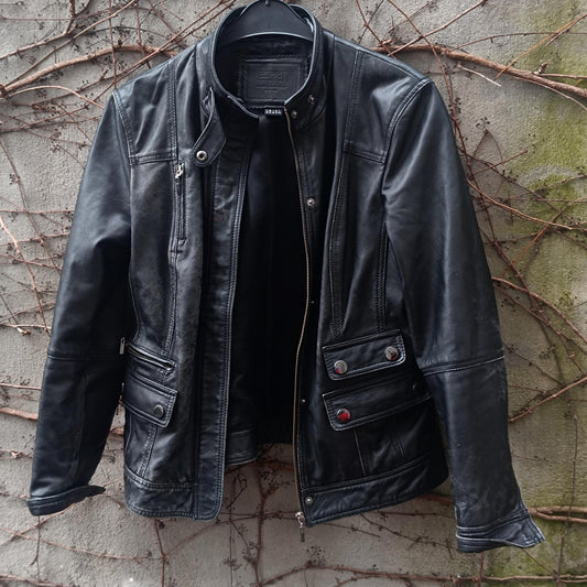 Vintage 90s Black Leather Jacket Minimalist Biker Style Women
