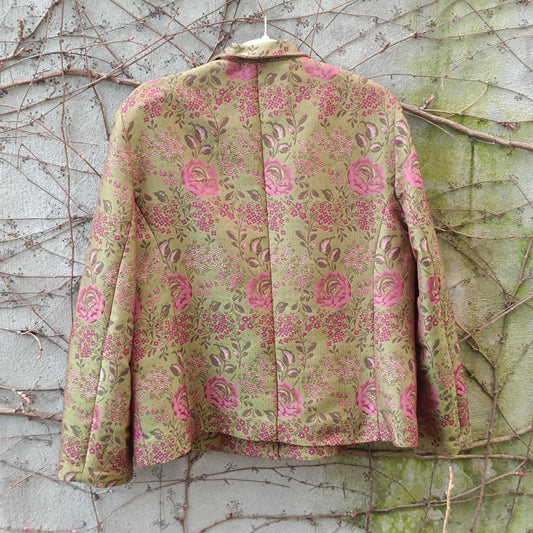 Handmade Vintage Brocade Blazer Floral Cropped Jacket Structured Retro