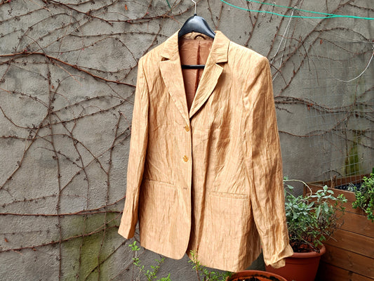 y2k Gold-Coloured Blazer| Vintage Oversized Women's Blazer| Minimalist Linen Blend Jacket