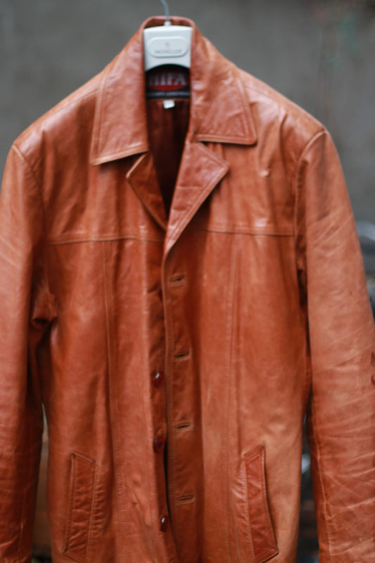 90s Hifa Exclusive Leather Jacket |Vintage Brown Leather Coat | minimalist leather design