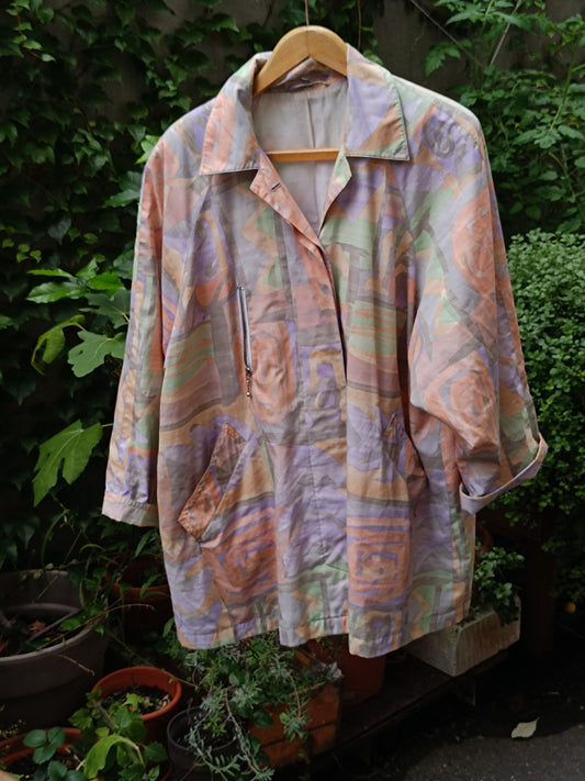 80s Nino Sportswear Jacket| Vintage multicoloured transitional coat| Pastel coloured abstract print lightweight jacket